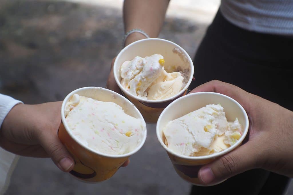ร้านไอศกรีมที่อยู่ไม่ไกลจากร้านแดงแกงป่า ที่คุณป้าทำเองทุกขั้นตอน เปิดมานานกว่า 40 ปี ซึ่งมีไอศกรีมให้เลือก 2 แบบด้วยกันคือแบบทรงเครื่องและกะทิสด