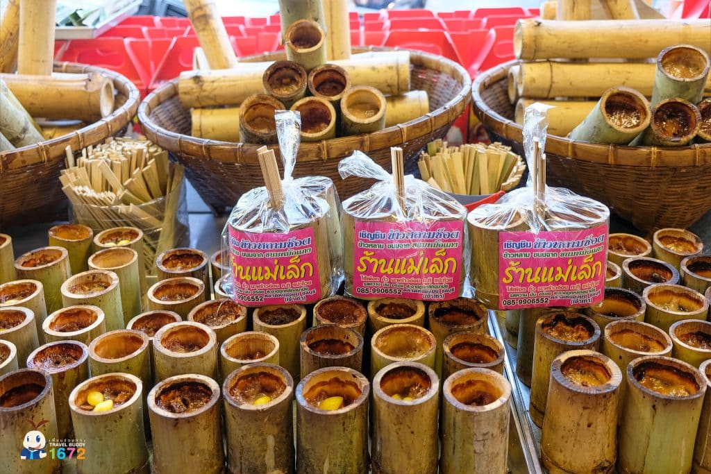 แต่ที่ห้ามพลาดเลยนั่นคือ ข้ามหลามหนองมน รสชาติดี หอม มัน มีหลากหลายเจ้าให้เลือกซื้อกันค่ะ