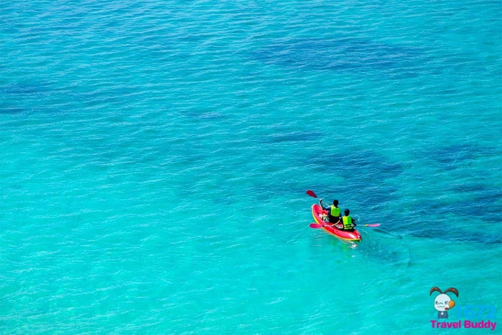 แอดขอเริ่มแนะนำที่กิจกรรมพายเรือคายัค (1 ลำ นั่งได้ 3 คน) ราคาชั่วโมงละ 100 บาท พายชมเกาะชมทะเลก็เพลินไม่น้อย อ้อ มีเรือแคนูใสให้พายด้วยนะ ราคาเท่ากันเลย