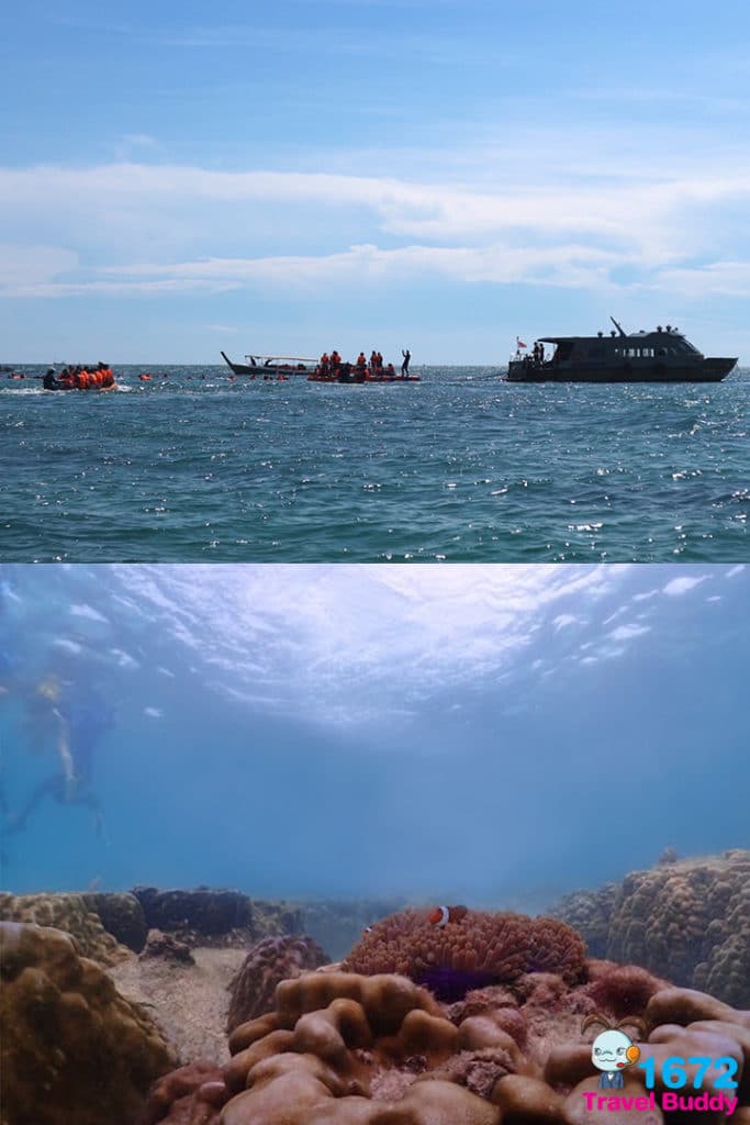 สำหรับเพื่อน ๆ ที่อยากเห็นโลกใต้น้ำแต่ไม่อยากเปียก แอดแนะนำกิจกรรมนี้เลย นั่นคือ นั่งเรือท้องกระจกศึกษาระบบนิเวศในแนวปะการัง คนละ 20 บาท ใช้เวลาประมาณ 20 นาที นั่งได้ลำละประมาณ 6 คน