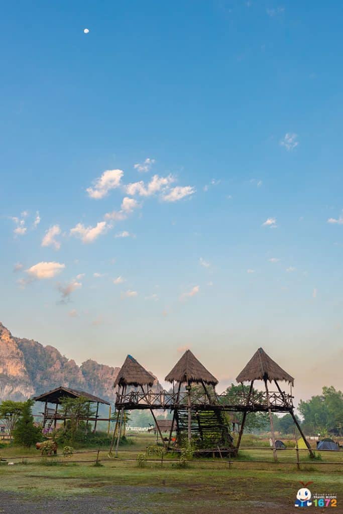 จุดต่อมา คุณตุ่นพาไปชมจุดตั้งแคมป์ เช่น บ้านมุงแคมป์และแคมป์หมาบ้าใจดี ที่พักแนวตั้งแคมป์กางเต็นท์ ที่นำรายได้ไปช่วยเหลือสุนัขจรจัด แต่สำหรับใครที่อยากทำกิจกรรมเเนวเเอดเวนเจอร์มากกว่าแค่นอนเต็นท์ สามารถสอบถามข้อมูลพิชิตยอดเขาหินปูนและจองล่วงหน้าที่คุณตุ่นได้เลย