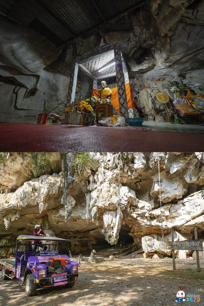 ในช่วงแรกของการนั่งรถชมหมู่บ้าน จะเป็นการพาชมถ้ำหินต่าง ๆ ที่กระจายตัวอยู่ทั่วชุมชน ทั้งถ้ำหลวงพ่อบุญมี ถ้ำนางสิบสอง รวมไปถึงถ้ำที่เหล่าค้างคาวอาศัยอยู่