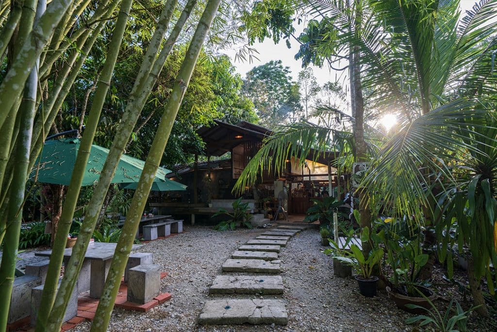 สถานที่ต่อมา คือคาเฟกลางสวนยาง ที่เกิดขึ้นจากความตั้งใจของคุณแชมป์-ภวัต สุวรรณมาศ ที่เปลี่ยนส่วนหนึ่งของสวนยางพาราของครอบครัว ให้กลายมาเป็นอาคารทรงโมเดิร์นติดกระจก พร้อมเครื่องดื่มและขนมที่อร่อย ใครได้มาลองเป็นต้องถูกใจ