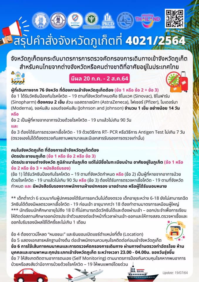 มาตรการการเข้าจังหวัดภูเก็ต (เผยแพร่ วันที่ 19 ก.ค. 2564)