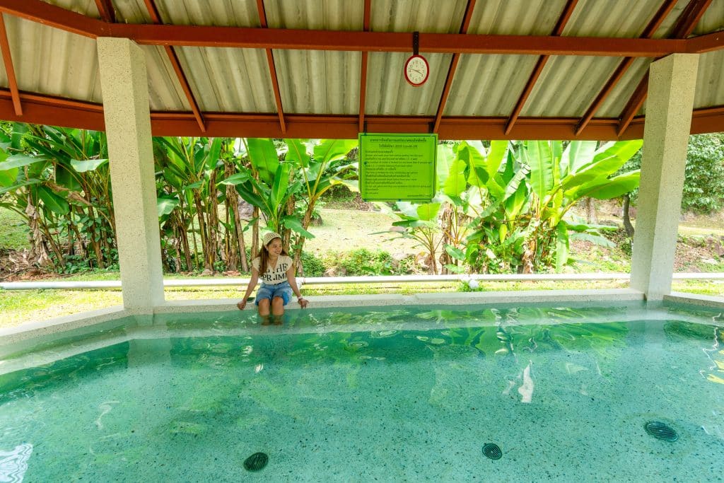 ที่นี่มีการสร้างบ่อสำหรับแช่ตัวและแช่เท้าแบบบ่อรวม เพื่อให้บริการนักท่องเที่ยวจำนวน 2 บ่อ นอกจากนี้ยังมีบ่อแช่ส่วนตัวอีก 4 ห้อง โดยมีการเดินท่อนำน้ำแร่จากแหล่งกำเนิดมาผสมกับน้ำอุณหภูมิปกติ ก่อนปล่อยน้ำเข้าสู่บ่อแช่ที่ให้บริการนักท่องเที่ยว ซึ่งจะมีอุณหภูมิน้ำเฉลี่ยอยู่ที่ 38-43 องศาเซลเซียล เป็นอุณหภูมิที่เหมาะกับการแช่ตัวและเท้าเพื่อบำบัดรักษาโรคและผ่อนคลาย