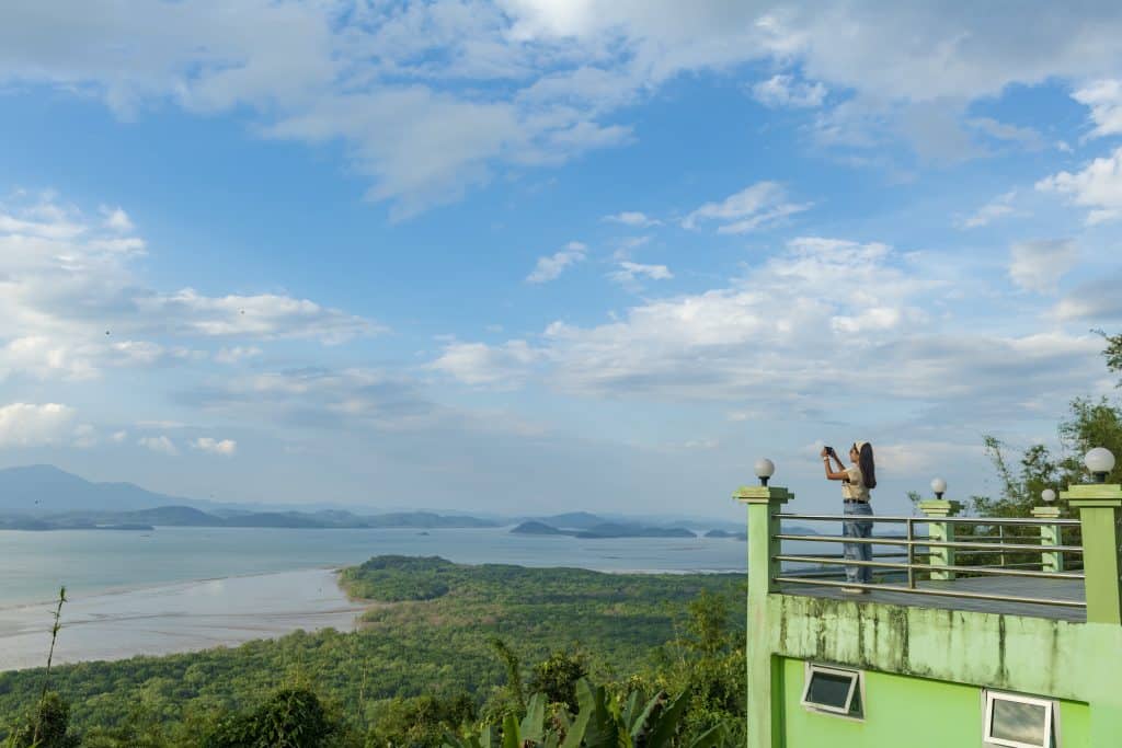 บริเวณจุดชมวิวสามารถชมทัศนียภาพอันกว้างไกลของแม่น้ำกระบุรี ซึ่งเป็นพรมแดนธรรมชาติกั้นเขตแดนระหว่างไทยและเมียนมา รวมทั้งเกาะต่าง ๆ กลางแม่น้ำ เช่น เกาะขวาง เกาะยาว เกาะปลิง เกาะโชน เกาะเสียด และเกาะนกเปล้า ตลอดจนทิวทัศน์ของป่าชายเลนที่ได้ชื่อว่ามีความสมบูรณ์มากอีกแห่งของประเทศไทย ทั้งยังเป็นจุดที่สามารถชมพระอาทิตย์ตกลับขอบฟ้าที่สวยงามอีกแห่ง บริเวณนี้สามารถกางเต็นท์พักแรมได้