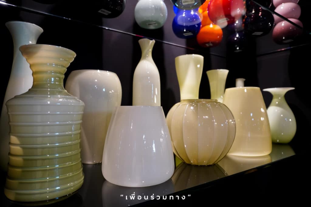 โชว์รูมนี้เดิมก็คือโรงงานเป่าแก้วนั่นเอง เพื่อน ๆ ยังสามารถเห็นความเท่ของโรงงานได้อยู่ สินค้าที่นี่มีหลากหลาย เรียงรายกันเพียบ ทั้งจาน ชาม แก้ว เหยือก แจกัน และอื่น ๆ สวยและราคาไม่แพง น่าช้อปปิ้งมาก ๆ จริง ๆ แค่เดินชมก็เพลินแล้วค่ะ