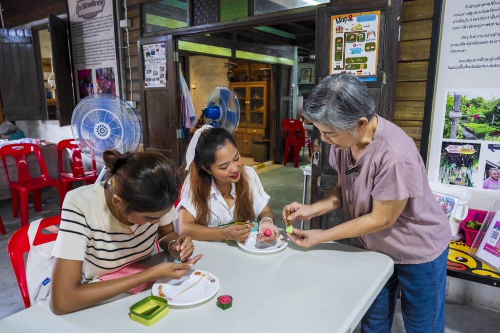 ชุมชนริมคลองที่ให้บรรยากาศชิล ๆ พร้อมกิจกรรมสนุก ๆ ให้ได้ลองทำกันทั้งทำขนมไทยมงคล ทำไข่เค็ม ระบายสีปูนปั้น ผ้ามัดย้อมจากสีธรรมชาติ ร้อยลูกปัด และเดินเล่นชมวิวสัมผัสวิถีชุมชนริมคลองพร้อมรับลมเย็น ๆ