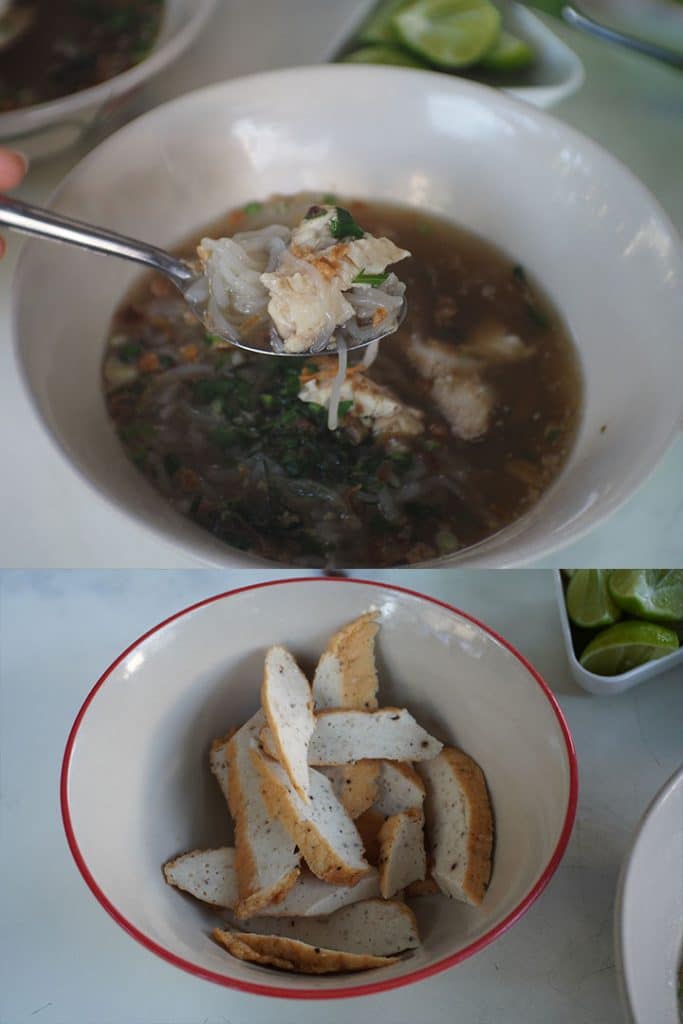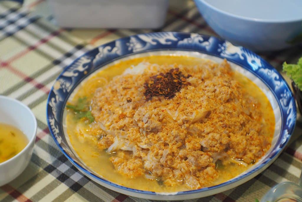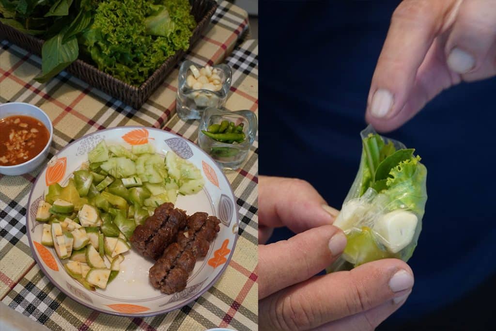 เมนูแรกที่บัดดี้สั่งมาคือชุดแหนมเนือง ที่คุณลุงเจ้าของร้านจะมาแนะนำวิธีห่อแหนมเนืองให้พอดีคำและแป้งไม่ขาดแบบง่าย ๆ ให้ด้วย รสชาติอร่อย ผักสด น้ำจิ้มดี อีกเมนูที่บัดดี้สั่งมาลองคือ หมี่กะทิเวียดนาม เส้นเหนียวนุ่มมาก เคี้ยวเพลิน น้ำราดรสชาติคล้ายขนมจีนน้ำพริกที่มีความเผ็ดนิด ๆ และหอมพริกแทรกขึ้นมา อร่อยมาก ๆ