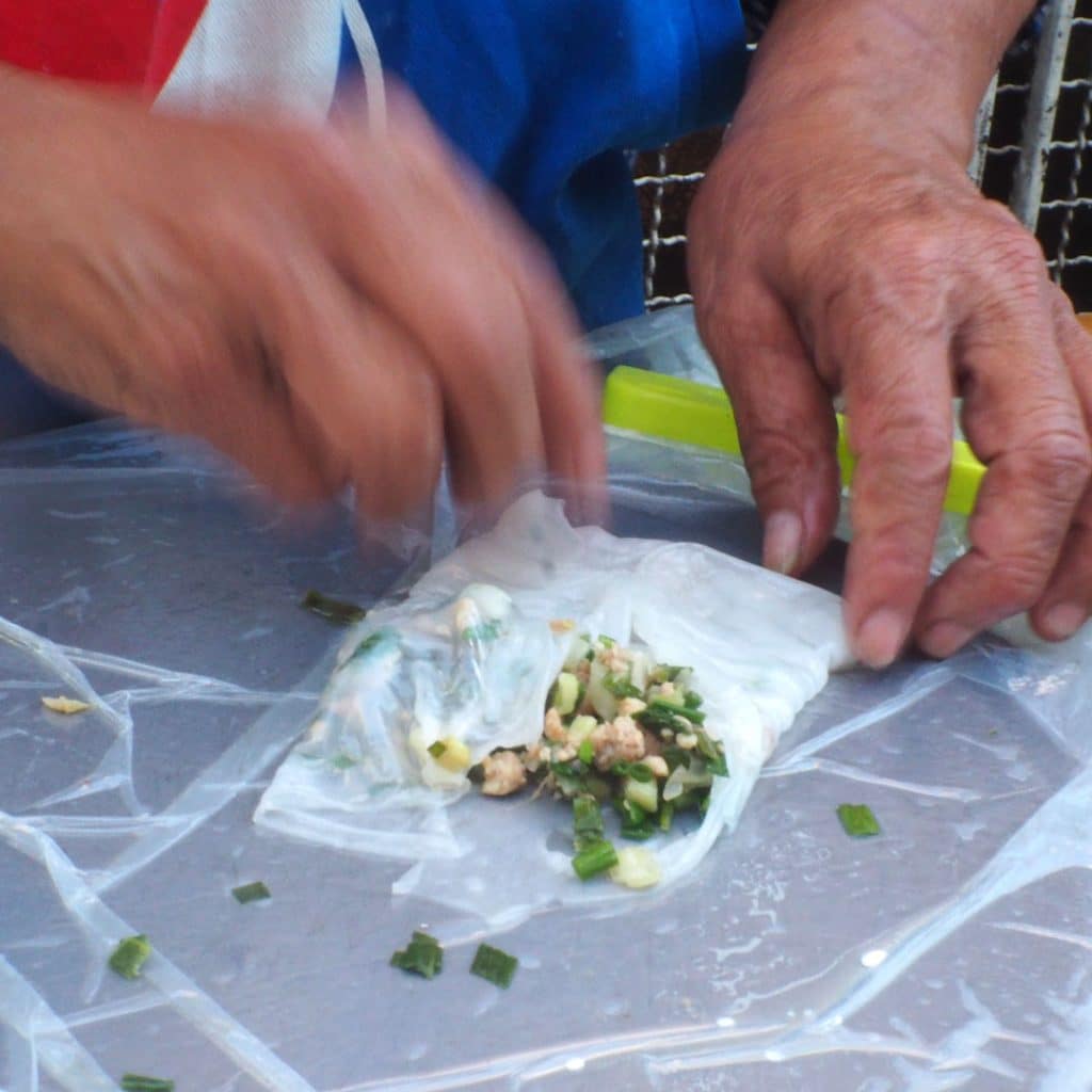 ปากหม้อญวน คงเป็นอาหารญวนจานโปรดของใครหลายคน ในบริเวณตลาดมีขายอยู่ 2-3 ร้าน บัดดี้เลือกอุดหนุนร้านเล็ก ๆ ของคุณป้าหน้าโรงเรียนโยนออฟอาร์ค คุณป้าบอกขายมา 45 ปีแล้วตั้งแต่ยังสาว แป้งนุ่ม ไส้เยอะ กลมกล่อมมาก