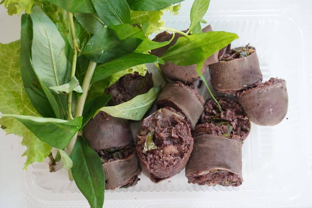 แม่ฝ้ายอาหารเวียดนามนครพนม เป็นร้านถัดมาที่บัดดี้แวะ ร้านนี้เป็นร้านรถเข็นที่ขายอาหารเวียดนามทำเอง มีหลากหลายเมนูราคาเริ่มที่ 30 บาท บัดดี้เหลือบไปเห็นหม้อต้มที่มีไส้กรอกสีคล้ำ ๆ อยู่ในหม้อ ป้าเลยบอกว่านี่คือ “โย่ย” เป็นไส้กรอกเลือดเวียดนาม ข้างในมีส่วนผสมของเลือดหมู แล้วนำมาต้มกับสมุนไพร บัดดี้สั่งมา 1 ชิ้น พอได้กินแอบนึกเสียดายที่สั่งมาแค่ชิ้นเดียว เพราะรสชาติอร่อย หอมสมุนไพรอย่างผักแพว ตะไคร้ รสชาติเค็มนิด ๆ มัน ๆ นวล ๆ นุ้มลิ้น เหมือนกินตับอร่อย ๆ จิ้มน้ำจิ้มซีฟู้ดและกินกับผักแนมคือ The Best มาก