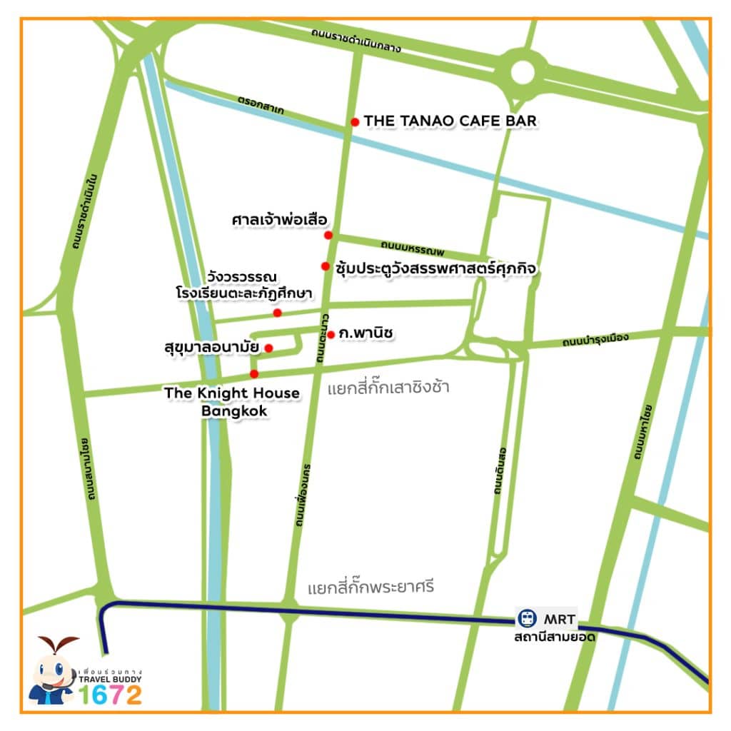 - พิกัดจุดชมย่านสามแพร่ง – ถนนตะนาว
