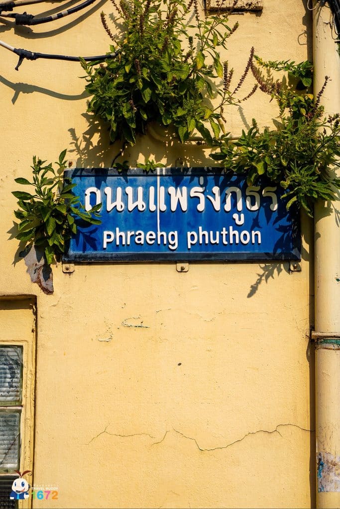 ฝั่งขวามือที่เรากำลังจะเดินเข้าไปในซอย มีป้ายชื่อถนนแพร่งภูธร ตัดกับอาคารสีเหลือง เหมาะจะเป็นมุมเช็กอินถ่ายรูปปัง ๆ