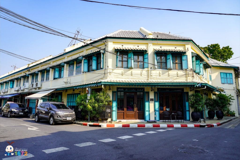 ตึกแถวในบริเวณนี้ รวมทั้งตึกแถวในซอยแพร่งนราจะมีลักษณะคล้ายคลึงกัน เป็นสถาปัตยกรรมสไตล์ยุโรปผสมจีนตั้งเรียงยาวทั้ง 2 ฝั่ง