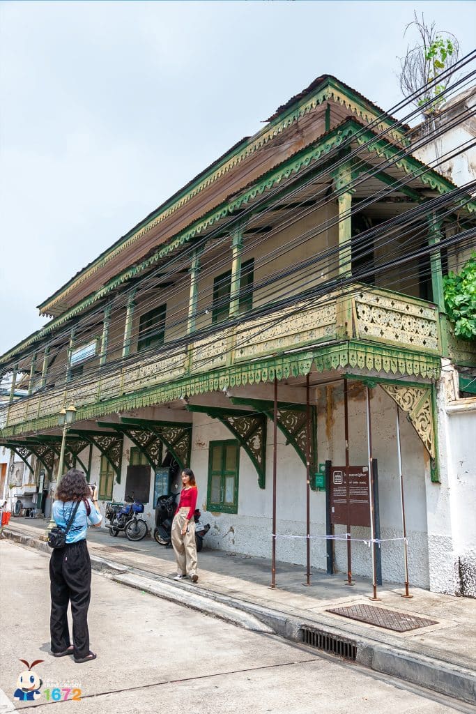เดินชมกันต่อที่แพร่งนรา นอกจากอาคารตึกแถวสีเหลืองที่ตั้งเรียงทั้งสองฝั่งแล้ว ยังมีอาคารเก่าที่มีรูปแบบสวยงามไม่แพ้กัน