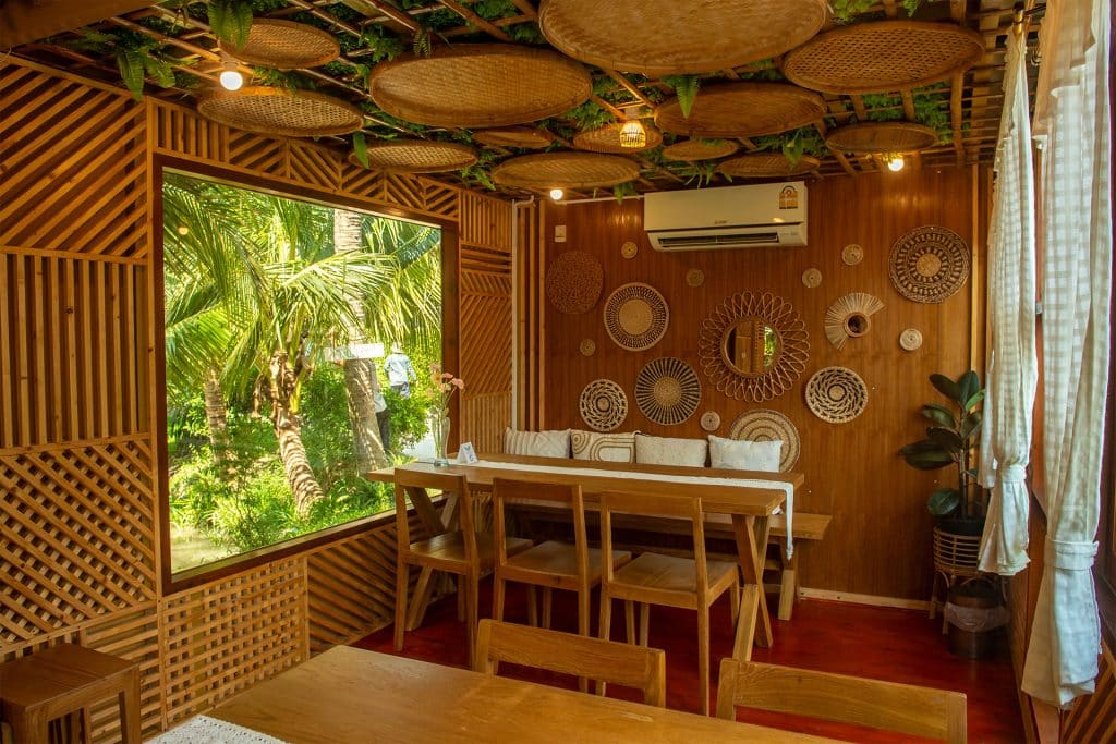 คาเฟริมน้ำลับ ๆ กลางสวน ที่มีบรรยากาศร่มรื่นเย็นสบาย เนื่องจากตั้งอยู่กลางสวนมะพร้าวที่ล้อมรอบด้วยคลองสองห้อง ทำให้คาเฟแห่งนี้มีกิมมิคที่ไม่เหมือนใคร คือ นักท่องเที่ยวจะต้องนั่งเรือหางยาวเพื่อเข้ามายังคาเฟเท่านั้น โดยสามารถจอดรถได้ที่วัดหนองสองห้อง และขึ้นเรือจากท่าวัดหนองสองห้องมายังคาเฟซึ่งใช้เวลาเพียง 1 นาทีเท่านั้น