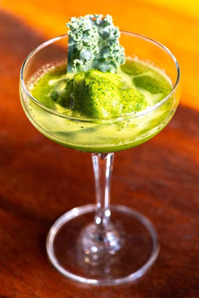 น้ำเคลปั่น Welcome Drink ที่กินแล้วสดชื่นมาก ไม่มีกลิ่นหรือรสชาติของผักอยู่เลย ใครไม่กินผักกินแก้วนี้ได้ 100%