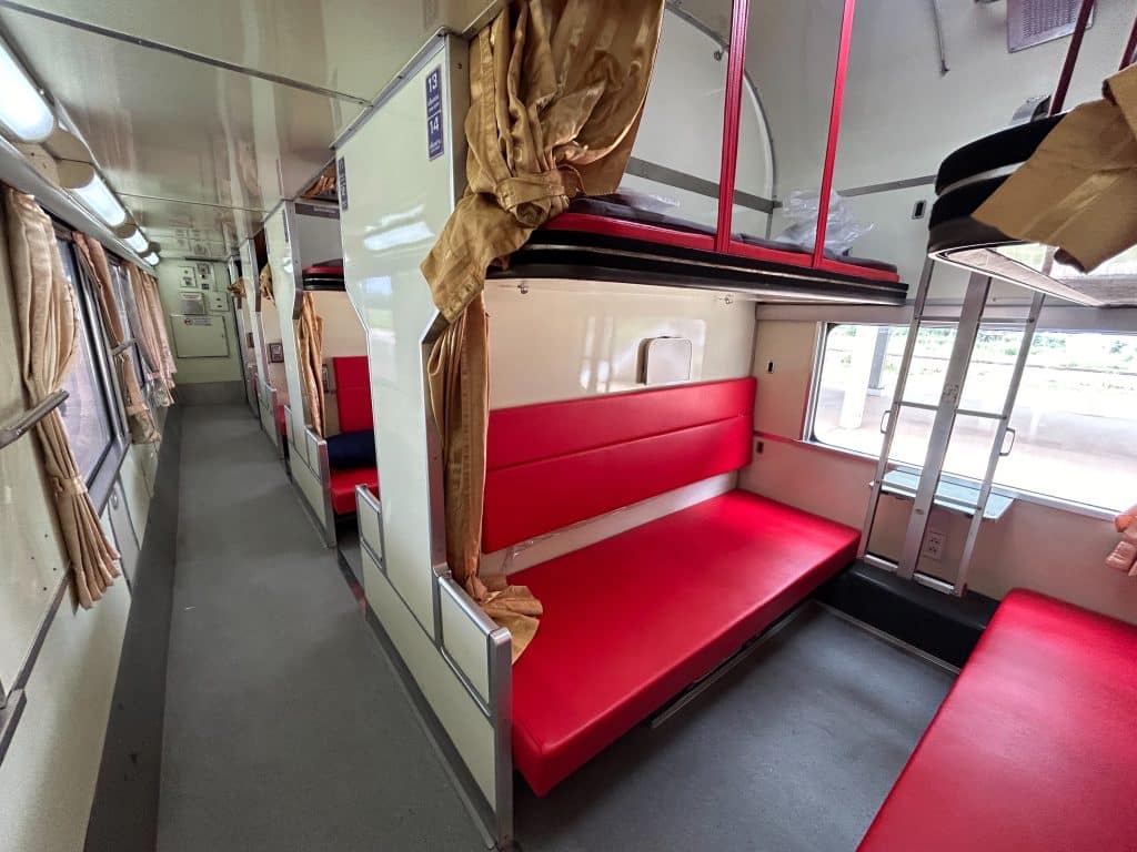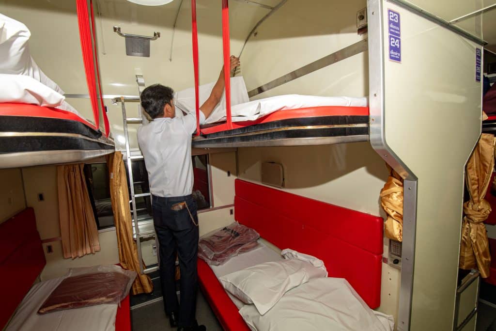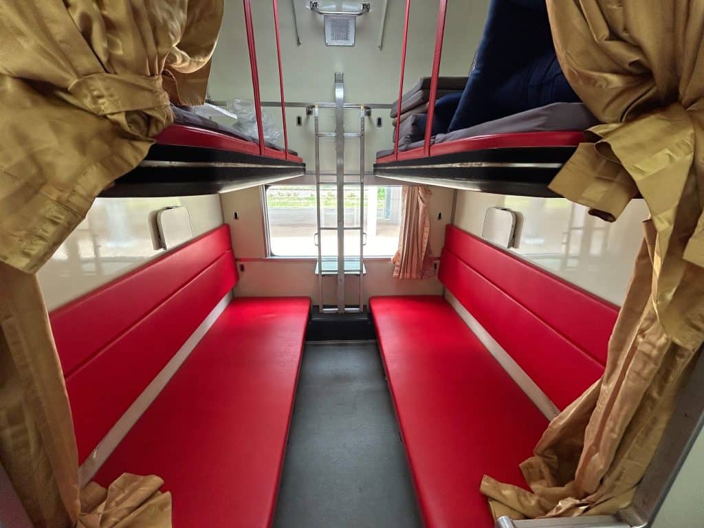 ตู้นอนล็อคละ 4 เตียง แบ่งเป็นชั้นล่าง 2 เตียง ชั้นบน 2 เตียง อีกฝั่งเป็นทางเดิน มีหน้าต่างให้เราชมวิวสวย ๆ ตลอดการเดินทาง เตียงนอนกว้างขวาง สะอาด มีหมอน ผ้าห่ม ปลั๊กไฟ และม่านกั้นส่วนตัวในแต่ละเตียง เวลาประมาณ 22.00 น. จะมีเจ้าหน้าที่มาปูที่นอนให้ แต่หากเพื่อน ๆ คนไหนง่วงหรือต้องการให้ปูเร็วขึ้น ก็สามารถแจ้งเจ้าหน้าที่ได้ตลอดเลยนะ