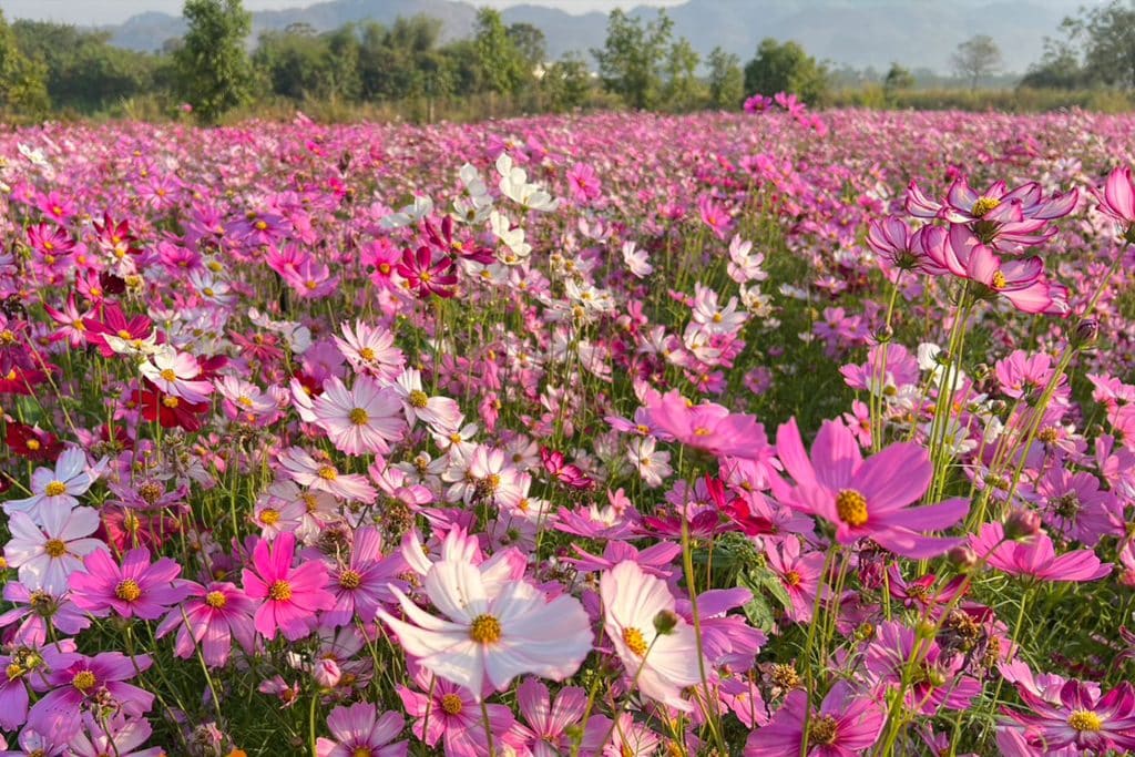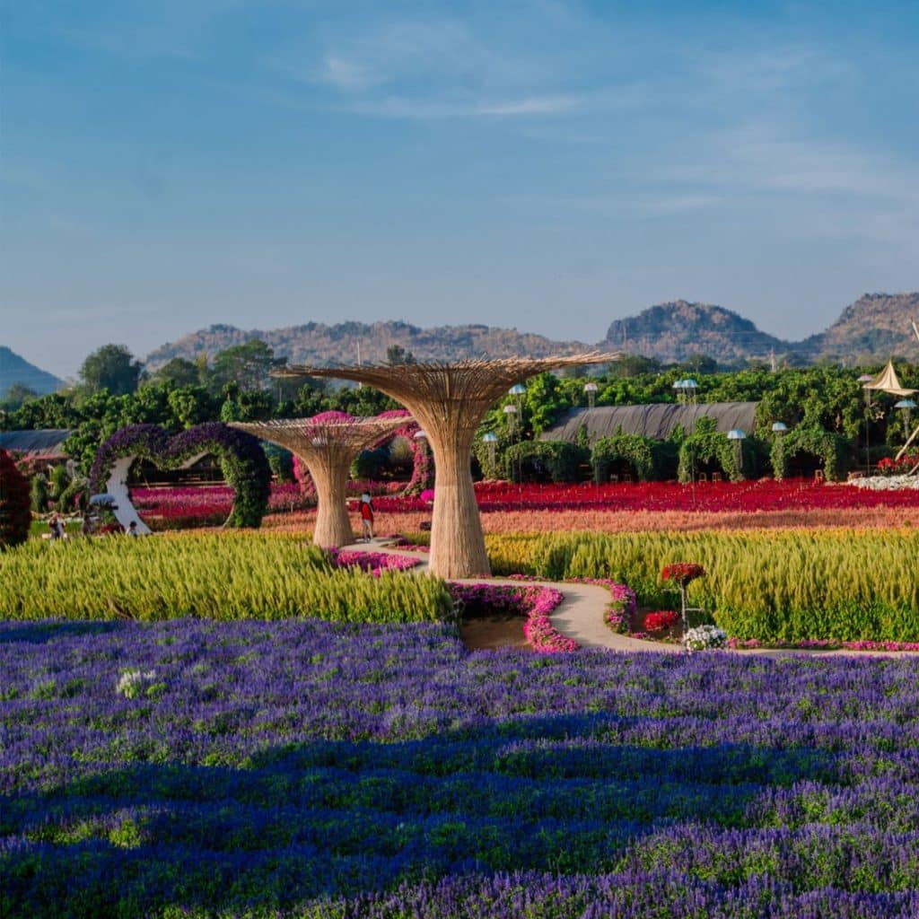 เพื่อน ๆ สามารถเที่ยวชมความงามของทุ่งดอกไม้กลางแจ้งพร้อมจุดถ่ายรูปสวย ๆ รวมไปถึงโซนคาเฟ่และร้านค้าจากวิสาหกิจชุมชนชวนให้เราเพลิดเพลิน ที่นี่ยังเต็มไปด้วยดอกไม้เมืองหนาวให้ชื่นชมหลายสายพันธุ์ ทั้งพิทูเนีย คัตเตอร์ เยอบีน่า ทานตะวัน บีโกเนีย และอื่น ๆ อีกมากมาย