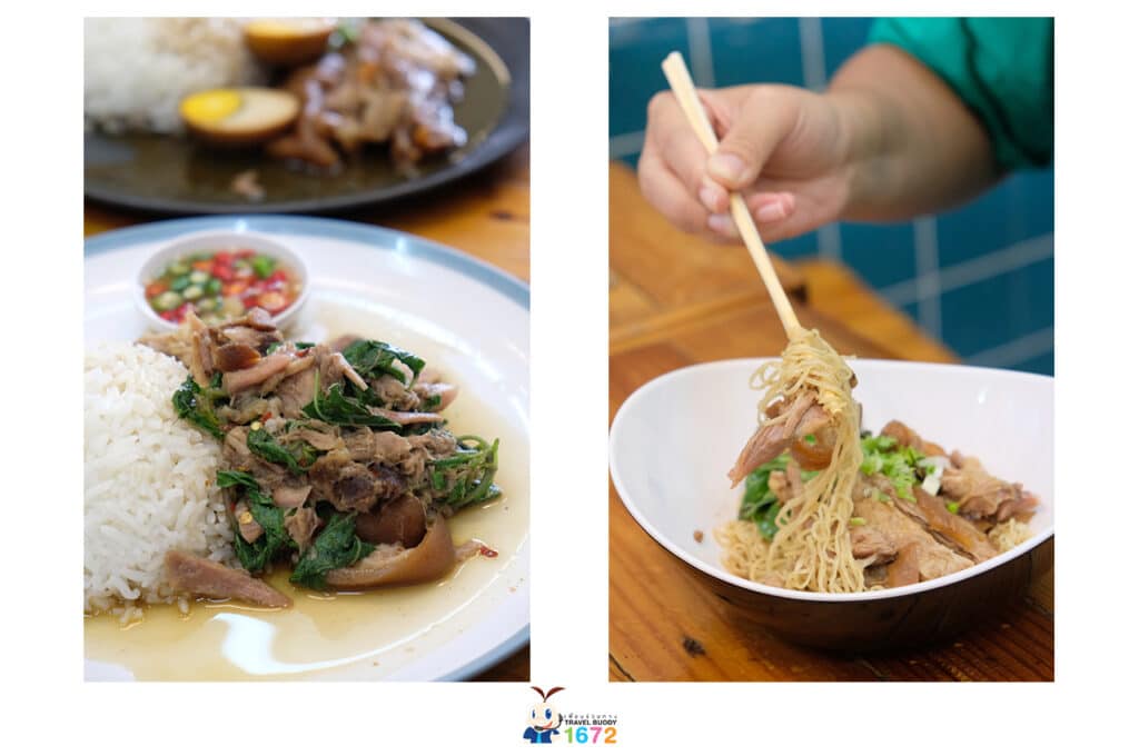 เริ่มที่ร้านขาหมู สูตรฮ่องเต้ ร้านนี้ไม่ได้มีแค่ข้าวขาหมูแบบดั้งเดิมนะ แต่ยังมีเมนูน่าลองอีกหลายอย่างไม่ว่าจะเป็น บะหมี่ก๋วยจั๊บน้ำข้น บะหมี่ขาหมู กะเพราขาหมูพริกแห้ง ฯลฯ