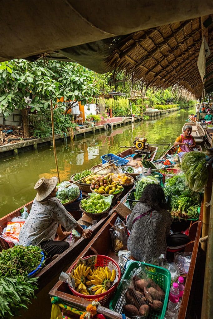 ตลาดน้ำใกล้กรุงอีกแห่งที่แนะนำ ใช้เวลาเดินทางจากกรุงเทพฯ ประมาณ 1 ชั่วโมง ที่มีของกินมากมาย อร่อยทุกร้าน และเป็นอาหารพื้นบ้านดั้งเดิมอีกด้วย เช่น เป็ดพะโล้ ต้มเค็มปลาทู ต้มเค็มปลาตะเพียน ขนมจีนน้ำยากะทิ น้ำยาป่า ห่อหมกปลาช่อน ทอดมันปลากรายแท้ และขนมไทยโบราณ เรียกว่าเป็นสวรรค์ของนักกินโดยแท้ ยังมีผักและผลไม้ที่ส่งตรงมาจากสวนชาวบ้านให้เลือกซื้อกันอีก บรรยากาศก็โดนใจกับกลิ่นอายย้อนยุค ที่มีร้านค้าเรียงรายอยู่ตามแพและเรือนริมน้ำ สามารถล่องเรือแม่น้ำท่าจีนชมวิวสองฝั่ง วิถีบ้านริมน้ำได้