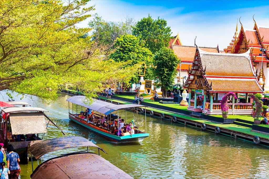 ตลาดน้ำในกรุงเทพฯ ที่เดินทางได้ง่าย ที่นี่เป็นตลาดน้ำกลางกรุงที่จำลองวิถีชีวิตริมน้ำผ่านกิจกรรมที่น่าสนใจต่าง ๆ ได้แก่ การตักบาตรทางเรือ และงานทอดผ้าป่าทางน้ำ พร้อมเลือกชิมอาหารคาวและขนมหวานจากทั่วทุกภาคของประเทศไทย นักท่องเที่ยวสามารถเลือกรับประทานได้ทั้งบนฝั่งและนั่งเรือ