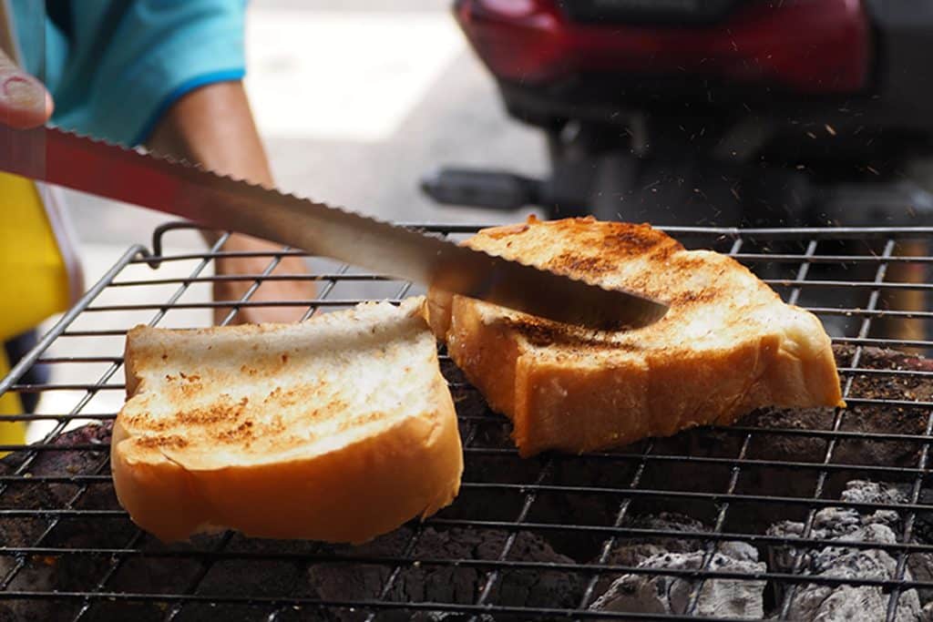 ส่วนเมนูเด็ดเมนูดังที่หลายคนมาต้องสั่งก็คือขนมปังปิ้งเนยนม ราคาแผ่นละ 8 บาท ที่รสชาติหน้าแน่นระดับตำนาน อยู่คู่ตลาดน้อยมากว่า 30 ปี ย่างด้วยเตาถ่าน กรอบนอกนุ่มใน ราคาเริ่มที่แผ่นละ 8 บาท ที่รสชาติอร่อย หอมทั้งเนยและกลิ่นถ่านที่ใช้ย่างนิด ๆ
