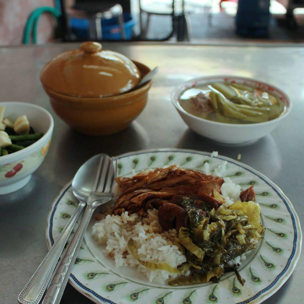 ร้านขาหมูขึ้นชื่อที่อยู่คู่บางรักมานานกว่า 40 ปี ข้าวขาหมูร้านนี้ น้ำราดรสชาติไม่จัดจ้านจนเกินไป กลมกล่อมกำลังดี กินคู่กับผักกาดดองและพริกน้ำส้มที่เผ็ดนิด ๆ อร่อยเข้ากัน สามารถสั่งไข่พะโล้หรือไส้หมูมาเพิ่มได้ด้วย