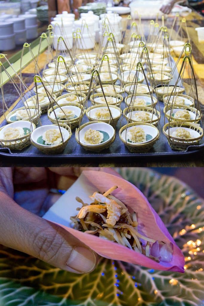อาหารบนรถมีหลากหลาย อร่อยทุกจาน ตั้งแต่ Welcome Drink “น้ำมะปี๊ด” เครื่องดื่มขึ้นชื่อของจังหวัดจันทบุรี และเมนูเรียกน้ำย่อยอย่าง “ข้าวตังหน้าตั้ง” และ “เมี่ยงกลีบบัว” ของว่างแบบไทยโบราณ