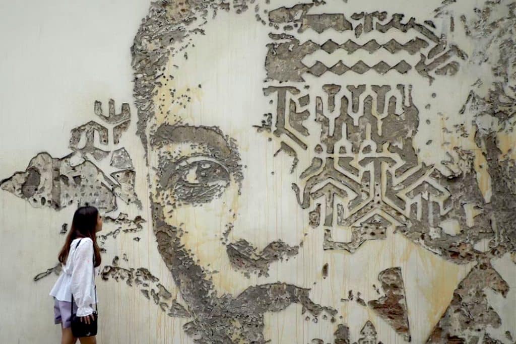 เมื่อเข้ามาเพื่อน ๆ จะเจองานกราฟฟิตี้ ของ ศิลปินชื่อดังชาวโปรตุเกส Vhils จากโครงการ Scratching the Surface Project ที่เกิดจากเทคนิคการเจาะกำแพง