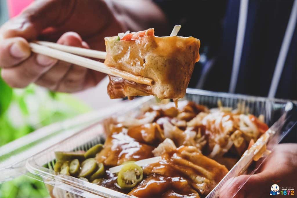 เปาะเปี๊ยะสดร้านนี้ เพื่อน ๆ สามารถสั่งได้ว่าจะเอาไส้อะไรบ้าง หรือหากใครกินมังสวิรัติก็สามารถแจ้งทางร้านได้เช่นกัน น้ำราดของทางร้านจะรสชาติออกหวาน กินคู่กับพริกเปรี้ยวหน่อย ๆ รสชาติเข้ากันได้ดีสุด ๆ