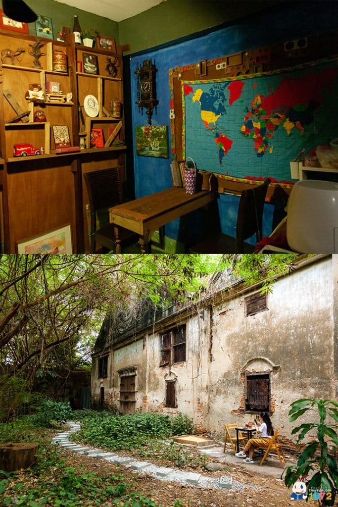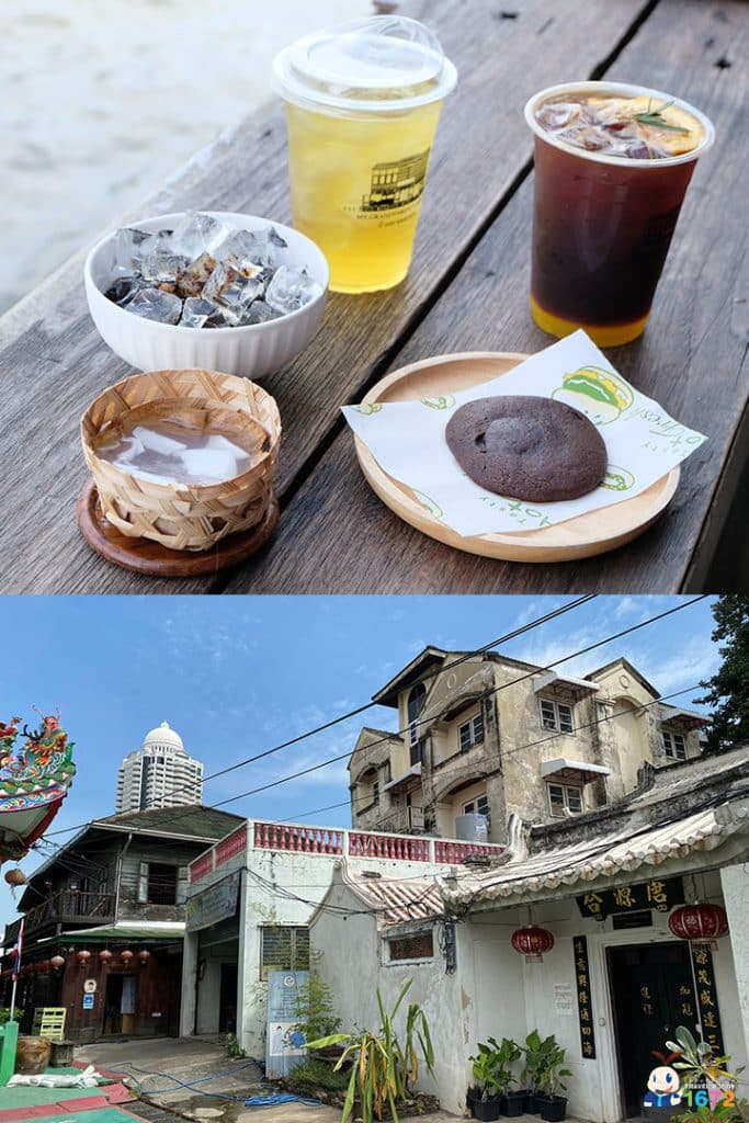 ติดกับศาลเจ้ากวนอู จะมีคาเฟ่ริมน้ำที่ดัดแปลงมาจากบ้านไม้ อายุกว่า 90 ปี จุดเด่นของที่นี่ก็คือ บรรยากาศ ที่มีความชิลระดับ 100 เต็ม 10 ทั้งตัวบ้านไม้ที่มีความย้อนยุคและขนม เครื่องดื่ม สูตรอาม่าเจ้าของร้าน ที่รอเพื่อน ๆ ไปชิม