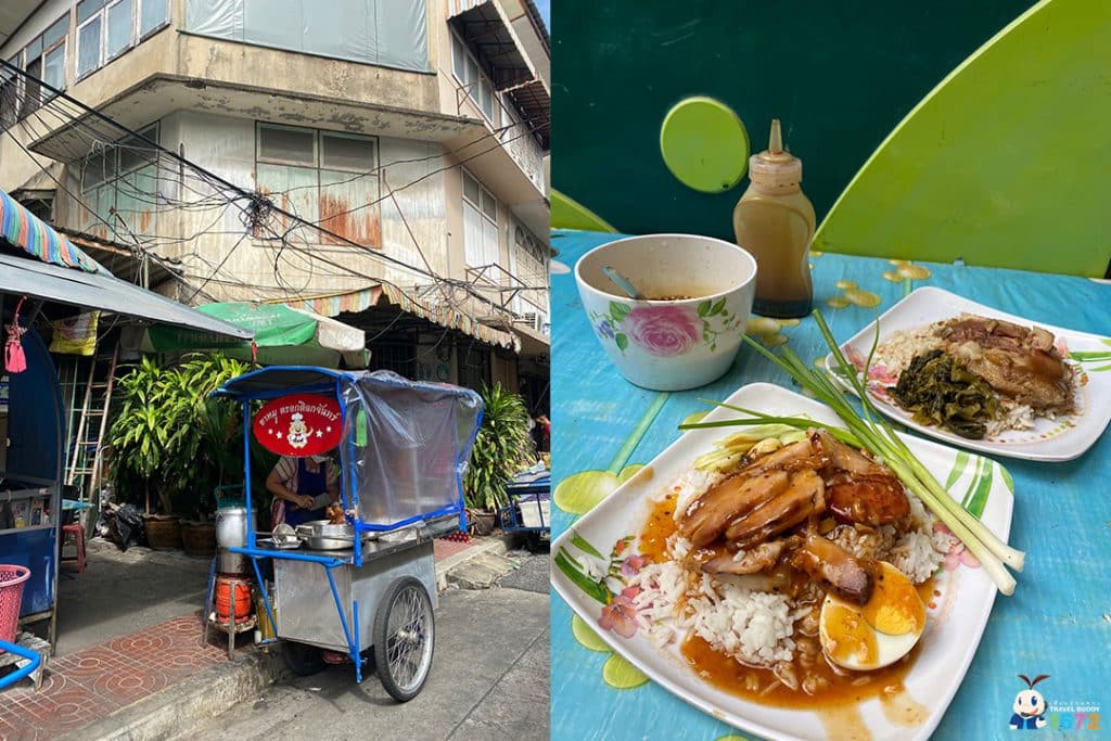 หลังจากเดินเล่นเรื่อยไปจนถึงกลาง ๆ ซอย เราก็ได้เจอกับ “ร้านขาหมูเจ๊นง” เป็นร้านรถเข็นเล็ก ๆ เจ้าของร้านอัธยาศัยดีเยี่ยม ยิ้มแย้มทักทายมาแต่ไกลเลยทีเดียว