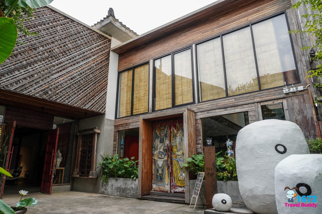 หลังเดินผ่านประตูซุ้มต้นไม้เข้ามา ก็จะพบกับอาคารเก่าแก่ 2 ชั้น อายุกว่า 120 ปีตรงหน้า เดิมที่นี่เคยเป็นโรงเรียนสอนภาษาจีน ก่อนจะถูกปรับปรุงให้กลายเป็นอาคารจัดแสดงนิทรรศการศิลปะที่สวยงาม มีการใช้สอยพื้นที่อย่างลงตัว ไม่แออัด