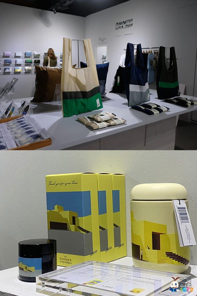 ภายในงาน มีจุดให้เลือกชมเลือกซื้อสินค้า อย่างเช่น โปสการ์ด แก้วกาแฟ ปลอกหมอน เสื้อยืดสกรีนลายภาพวาด ถุงผ้าและเก้าอี้ดีไซน์เก๋ ๆ ที่ปัจจุบันของเหล่านี้แทบจะกลายเป็นของสะสมแทนของไปใช้แล้ว