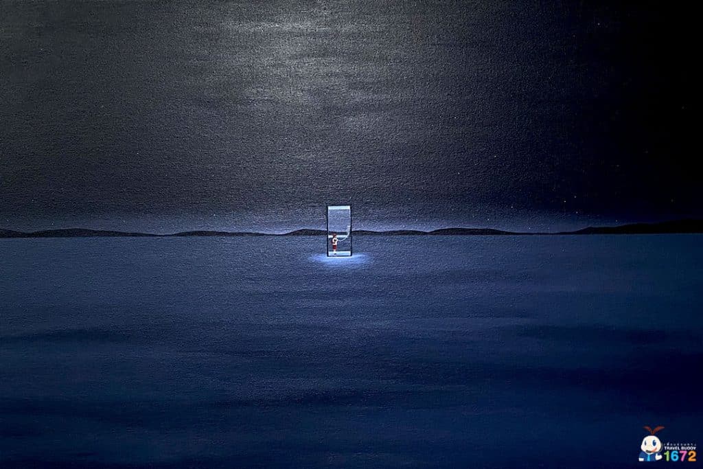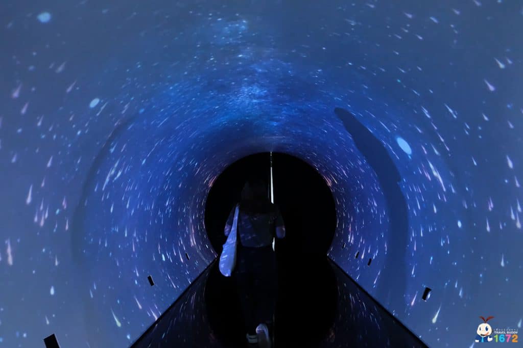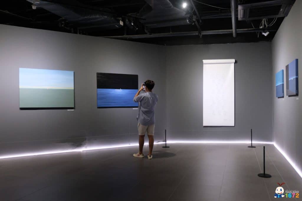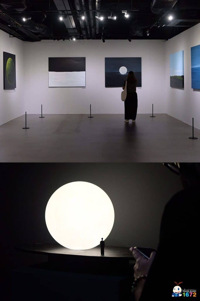 เมื่อเดินทางมาถึง เพื่อน ๆ จะเจอทางเข้างานที่มีลักษณะเป็นซุ้มอุโมงค์ยาว นำทางไปสู่ห้องจัดแสดงนิทรรศการ ภายในอุโมงค์จะเป็นเหมือนพื้นที่ปรับอารมณ์ให้สงบลงก่อนเดินชมภาพจริง มีแสง สี เสียงหลาย Mood ที่เปลี่ยนไปทุก ๆ 10 นาที เป็นจุด มหาชนที่หลายคนชอบมาถ่ายรูป