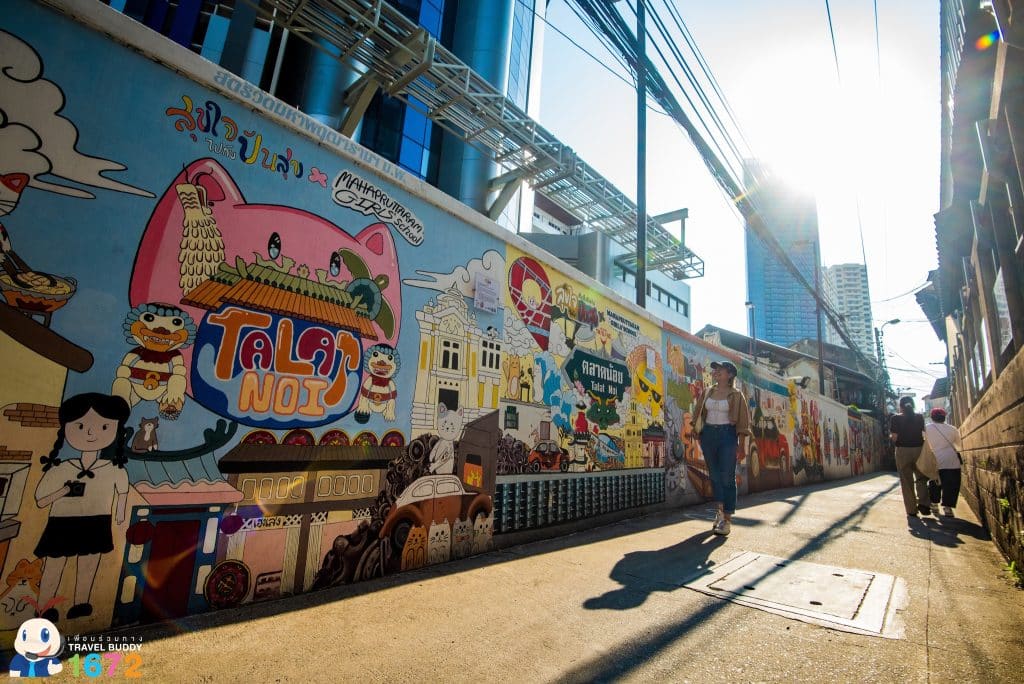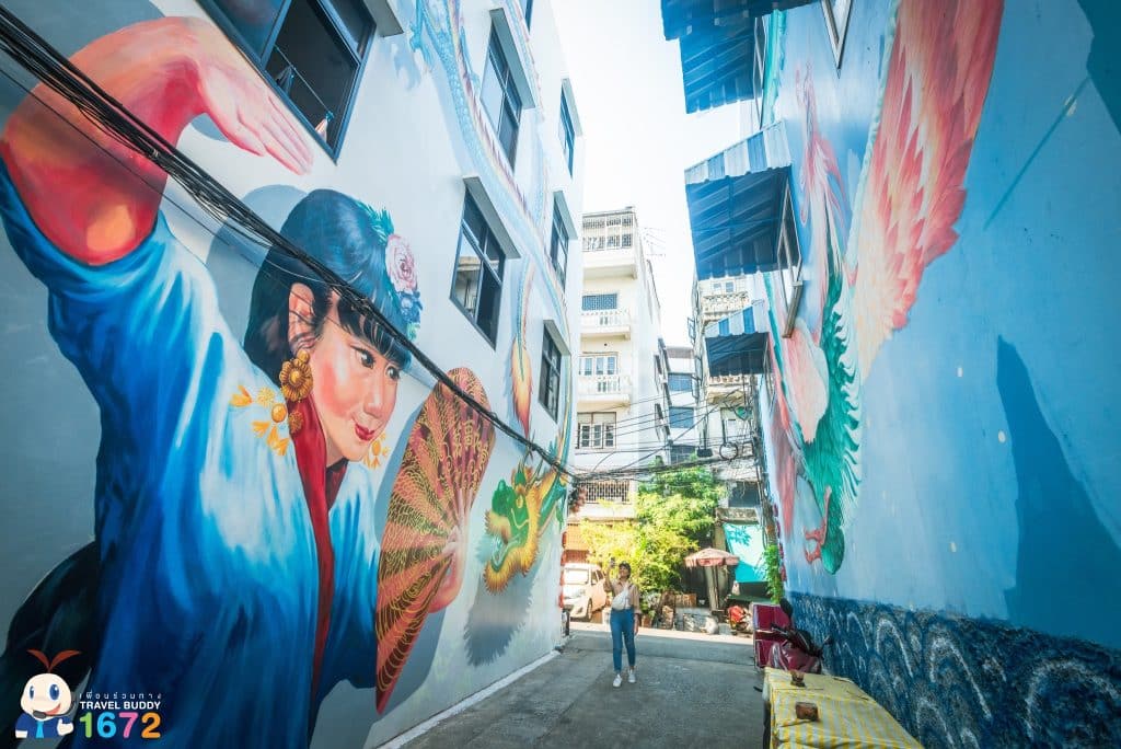 เห็นตรอกเล็ก ๆ แบบนี้ แต่ข้างในอัดแน่นไปด้วย Street Art สวย ๆ ตั้งแต่ต้นซอยยาวไปจนสุดเลยล่ะ ส่วนหนึ่งเป็นภาพวาดตามกำแพงจากร่องรอยของงาน “Urban Arts Festival 2016”