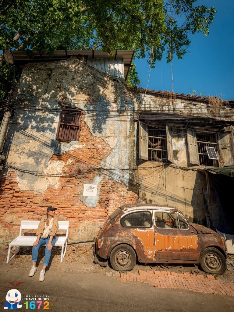 ถัดจากบ้านโซวเฮงไถ่เล็กน้อยก็จะเจอจุดมหาชนนิยมถ่ายรูปอีกแล้ว นั่นก็คือ รถเต่าสีส้มนั่นเอง จุดถ่ายรูปสุดฮิตของตลาดน้อยเลย!!