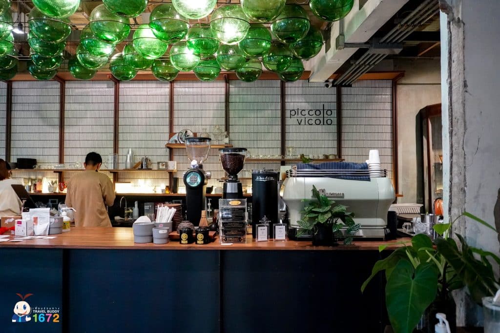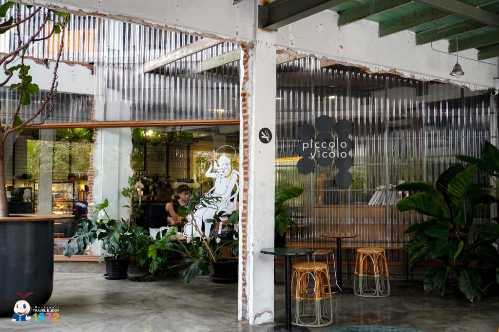 เมื่อเดินมาถึง มองเห็น Piccolo Vicolo Café (พิคโคโล่ วิโคโล่ คาเฟ่) ตั้งเด่นอยู่หน้าโครงการฯ จนต้องเดินเข้าไปทันที