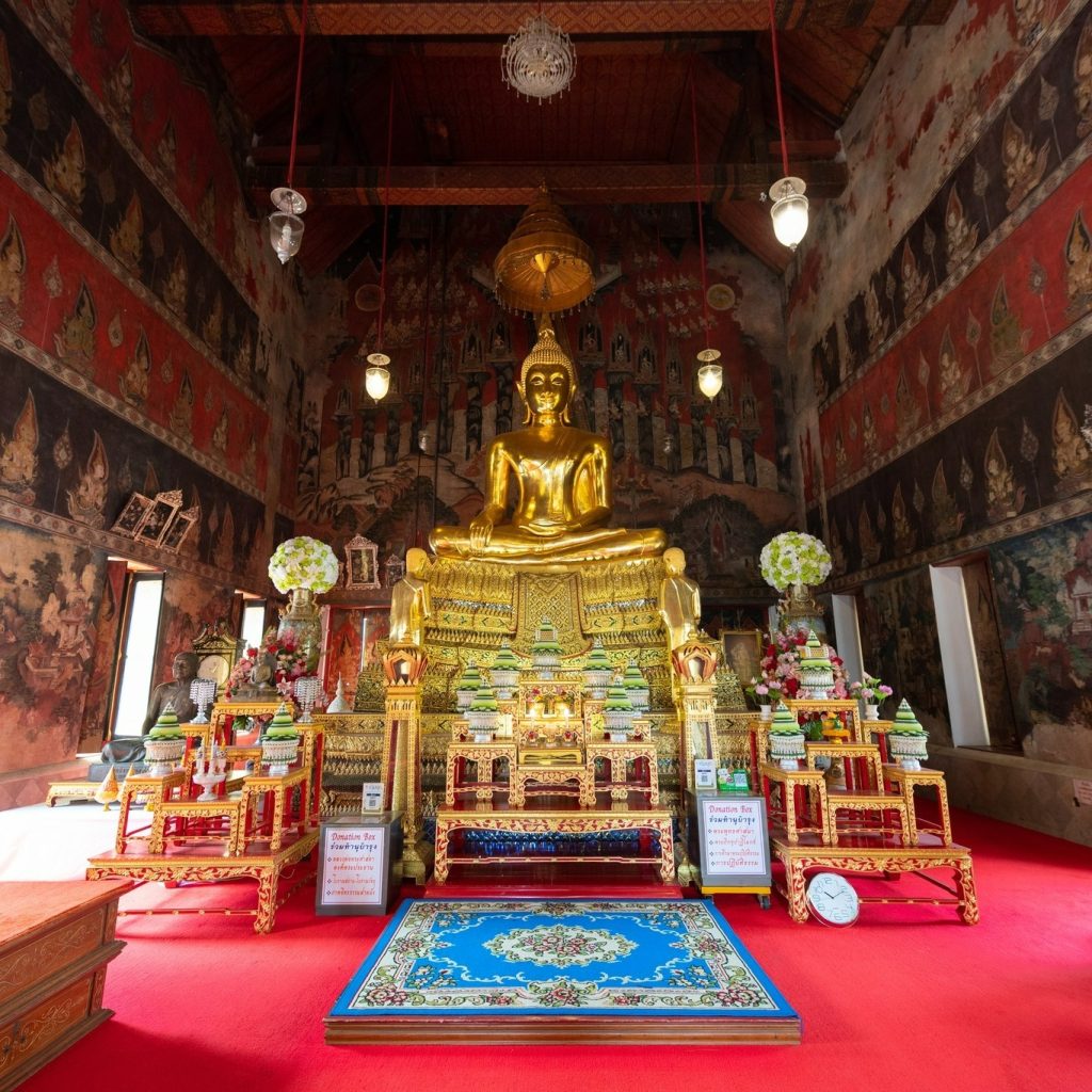 ที่แรกต้องไปแต่เช้าเลยนะ เพื่อน ๆ จะได้เห็นบรรยากาศของแสงแดดยามเช้า เห็นพระทำวัตรเช้า สามารถเข้าไปกราบพระประธานหลวงพ่อศาสดา ที่นี่มีความเกี่ยวเนื่องกับซีรีส์เรื่อง The White Lotus ได้อย่างไร