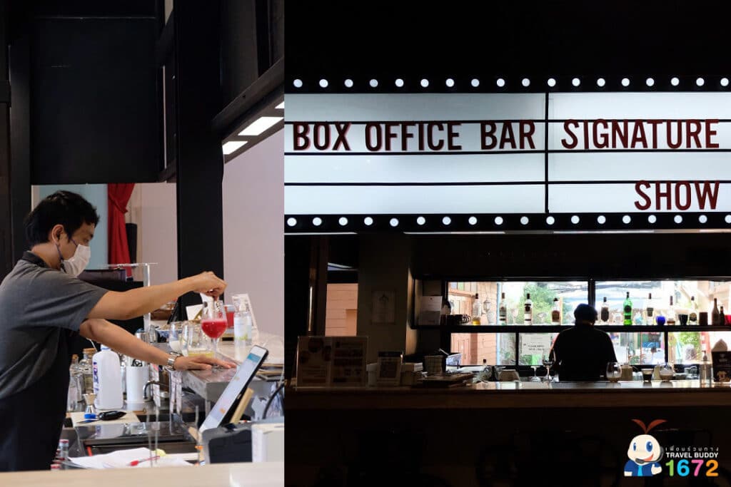 Box Office Bar จะอยู่ในพื้นที่เดียวกัน มีเมนูเครื่องดื่มหลากหลาย ทั้งชา กาแฟ น้ำหวาน ค็อกเทล (cocktail) และม็อกเทล (mocktail)