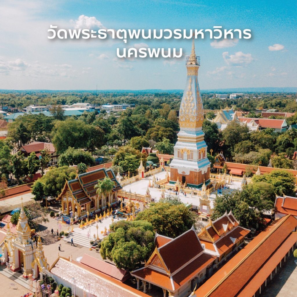 แลนด์มาร์คสำคัญของจังหวัดนครพนม กราบสักการะพระธาตุพนม พระธาตุเจดีย์อันศักดิ์สิทธิ์ ศาสนสถานอันงดงามของภาคอีสาน ภายในบรรจุพระอุรังคธาตุ (กระดูกส่วนหน้าอก) ของพระสัมมาสัมพุทธเจ้า เป็นที่ยึดเหนี่ยว ศูนย์รวมจิตใจ ความศรัทธาของชาวจังหวัดนครพนม รวมถึงยังเป็นพระธาตุประจำวันเกิดของผู้ที่เกิดวันอาทิตย์ และสำหรับใครที่มาขอพรที่นี่ก็มักจะสมหวังกลับไป เสริมสิริมงคลด้านบุญบารมีอีกด้วย