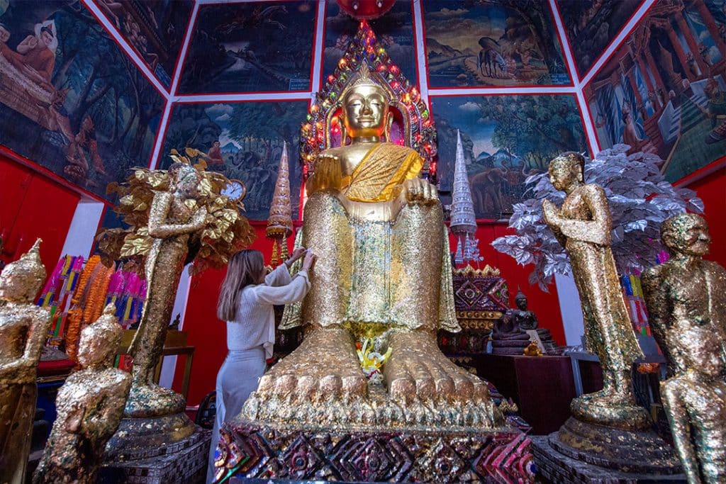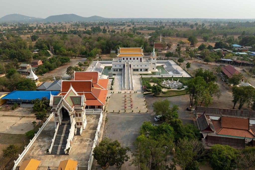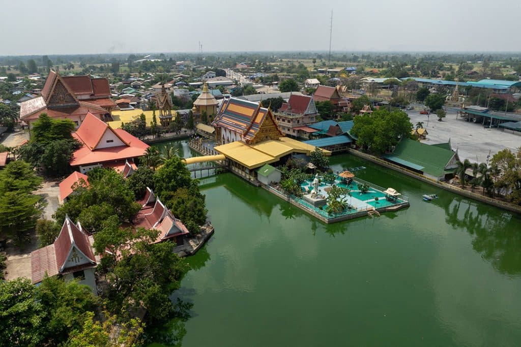 วัดสวยที่มี “อุโบสถมหัศจรรย์ของโลก” พระอุโบสถ 3 ชั้นสีขาวที่ตั้งอยู่กลางสระน้ำ มีบันไดด้านหน้าทอดยาวขึ้นไปสู่พระอุโบสถ ชั้นบนประดิษฐานพระประธาน “พระพุทธสุวรรณรังสี” ชั้นกลางเป็นศาลาปฏิบัติธรรม และชั้นล่างเป็นลานอเนกประสงค์ และเป็นกุฏิแก้วประดิษฐาน “พระอุปคุต”