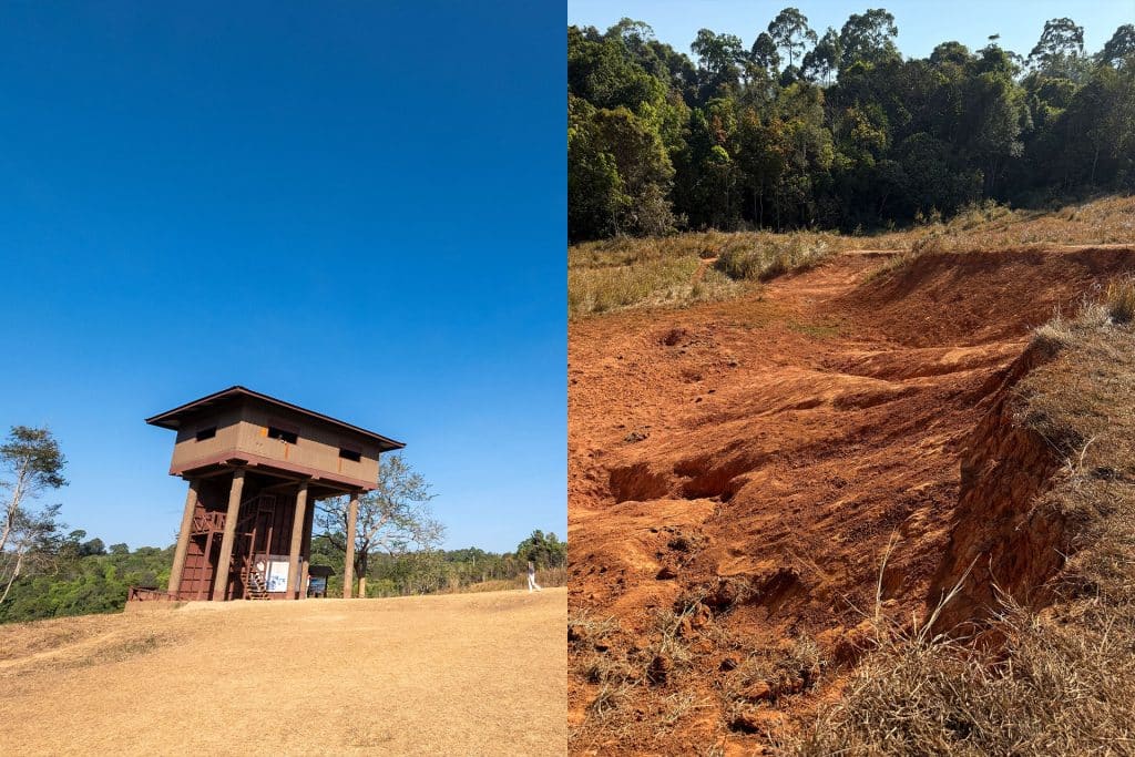 ในระหว่างเดิน จะมีแนวเขตกั้น ไม่ให้เราเดินออกนอกเส้นทาง เพราะหากเราเดินออกจากเส้นทาง เราจะรบกวนสัตว์ป่าที่อยู่บริเวณรอบ ๆ เช่น นกเงือก ที่อาศัยอยู่บริเวณนั้น