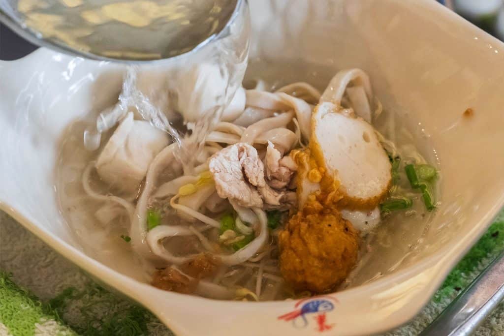 ร้านก๋วยเตี๋ยวชื่อดังอีกร้าน ที่มีความโดดเด่นจากลูกชิ้นปลา เส้นปลาและเกี๊ยวปลาทำเอง น้ำซุปใสไร้กลิ่นคาว ซึ่งหากใครชอบกินรสชาติจัดจ้าน ก็สามารถสั่งก๋วยเตี๋ยวต้มยำมาลองหรือจะสั่งเย็นตาโฟมาชิมก็อร่อยไม่แพ้กัน ใครเป็นสายเส้น อย่าพลาดร้านนี้เชียวล่ะ