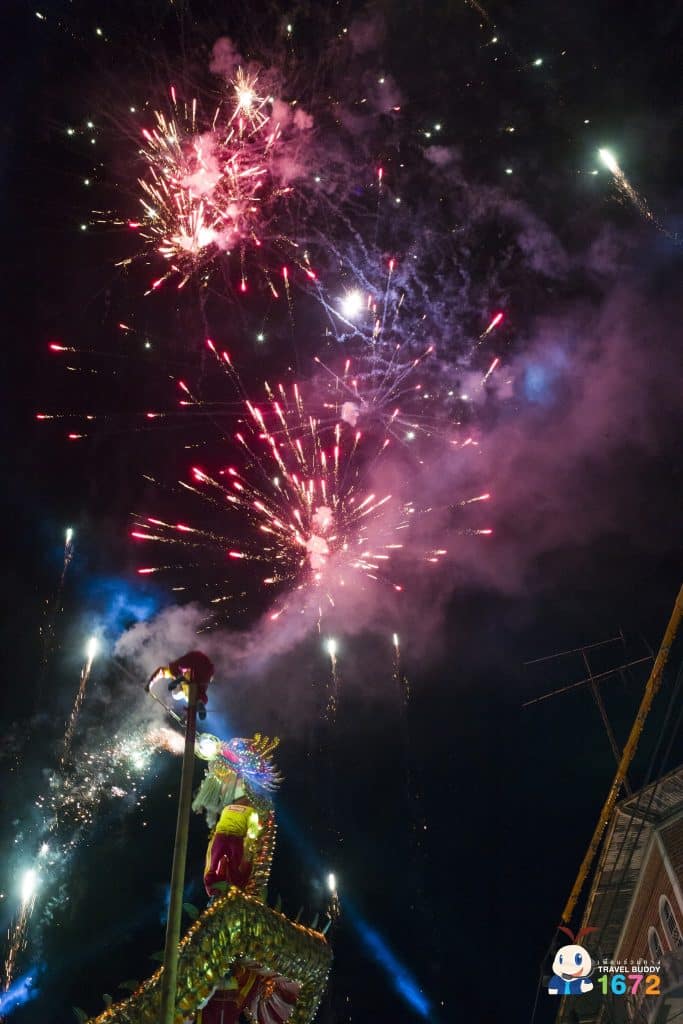 การแสดงของมังกรแห่กลางคืนจะมีการพ่นไฟ (จุดพลุ)