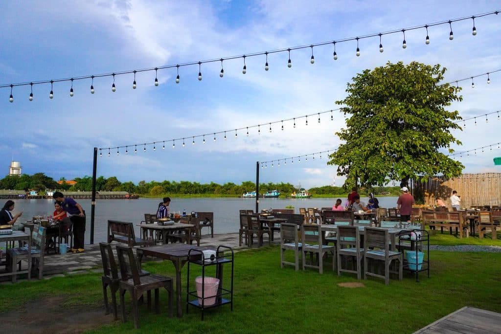 ออกเดินทางกลับกรุงเทพช่วงเย็น เริ่มหิวระหว่างทาง แวะมาที่อำเภอบางปะอิน กินหมูกระทะริมน้ำกันที่ “ร้านบ้านทองใบ คาเฟ่หมูกระทะ” ร้านอยู่ติดริมแม่น้ำเจ้าพระยา บรรยากาศดีสุด ๆ