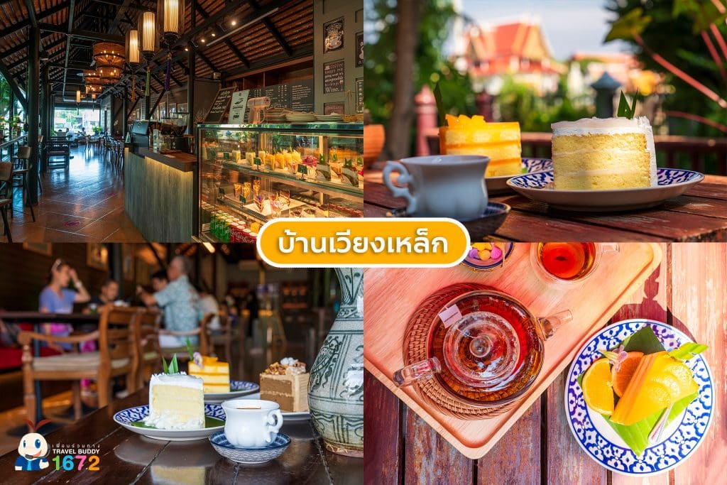 แวะมานั่งชิล ๆ ในบรรยากาศไทย ๆ ที่ “บ้านเวียงเหล็ก” ที่นี่เป็นทั้งที่พักและคาเฟ่ สำหรับโซนคาเฟ่จะอยู่ด้านหลัง ซึ่งอยู่ติดริมแม่น้ำ ตั้งแต่ทางเดินเข้าไปจนถึงคาเฟ่มีบรรยากาศร่มรื่นมาก ๆ ภายในร้าน ตกแต่งแบบไทยประยุกต์ รอบห้องติดกระจกใส ทำให้รู้สึกโปร่งสบาย ไม่อึดอัด