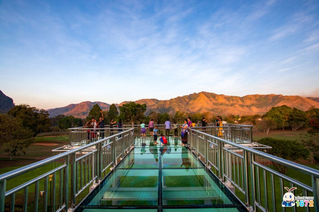 จุดแรกคือ “เขาแหลม สกายวอล์ก” เป็นสะพานทางเดินกระจกใส ระยะทาง 34 เมตร มองเห็นวิวธรรมชาติได้อย่างกว้างขวาง แถมด้านข้างสกายวอล์กมีเนินสนามหญ้าและมีอุปกรณ์สไลเดอร์ให้เพื่อน ๆ ได้เล่นกันด้วย