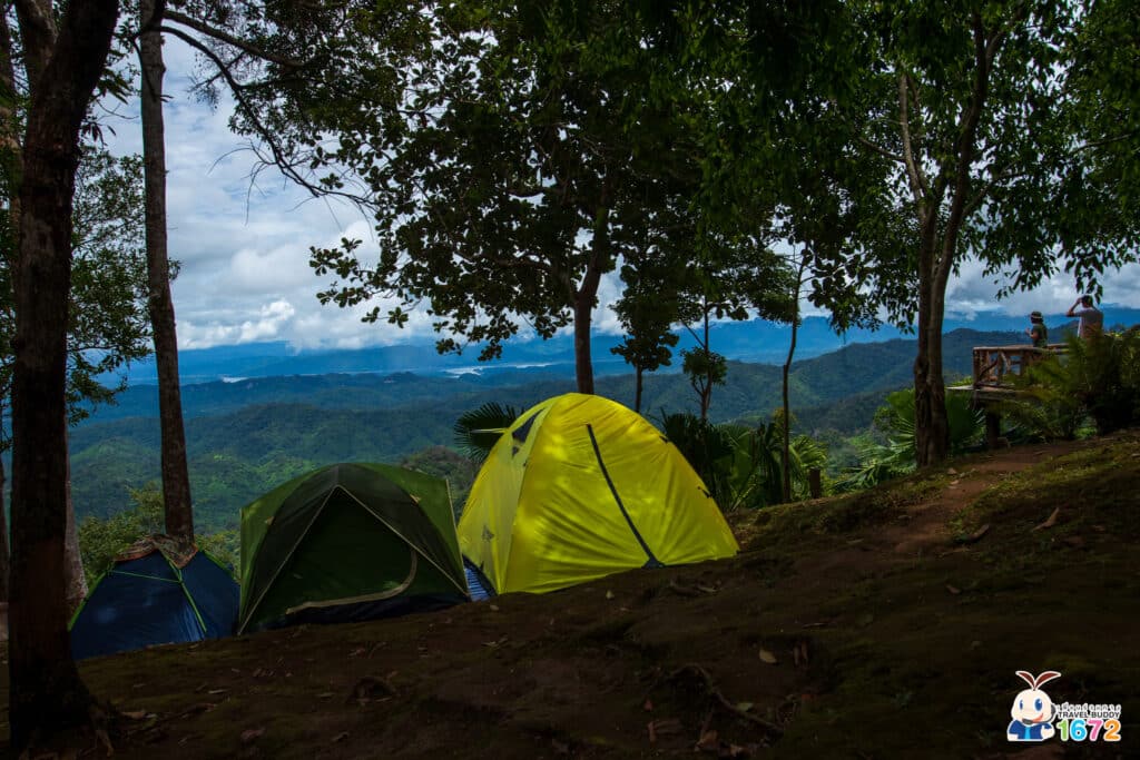 แน่นอนว่าจุดพักแรมไม่ได้มีแค่ต้นไม้รายล้อม แต่ยังมีจุดชมวิวให้เพื่อน ๆ ได้ชม ตรงนี้เรียกว่า “เนินกูดดอย-ช้างเผือก” เพื่อน ๆ สามารถมองเห็นวิวของทะเลสาบเขื่อนวชิราลงกรณ และเขาช้างเผือกได้จากตรงนี้เลยล่ะ